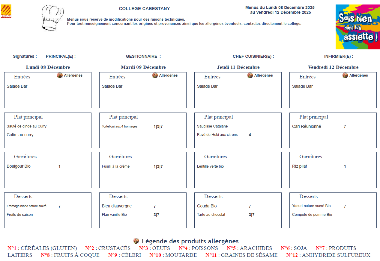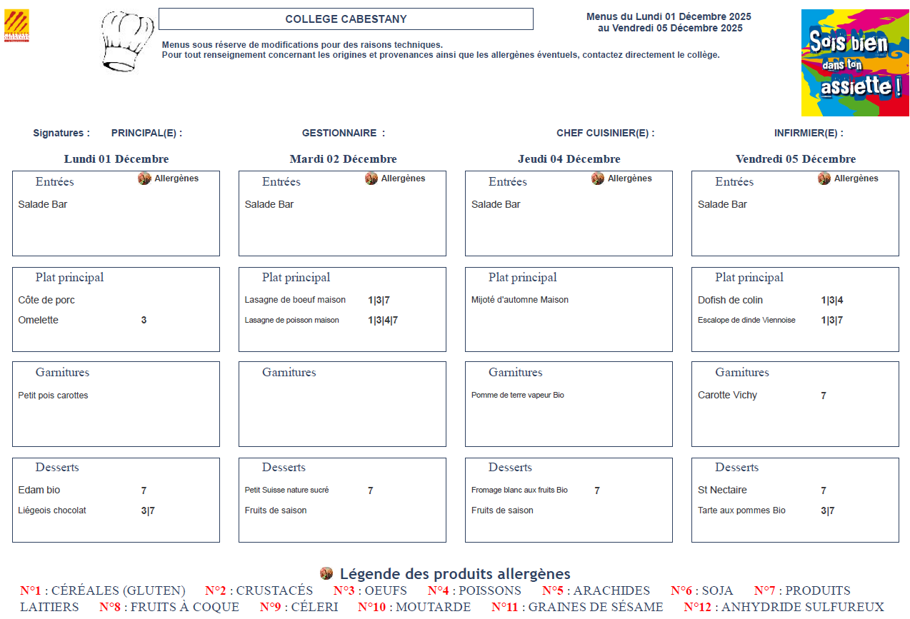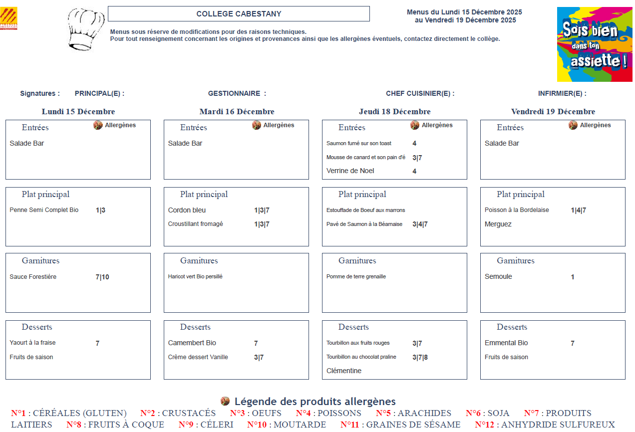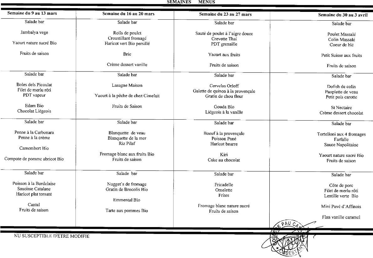Menus Cantine